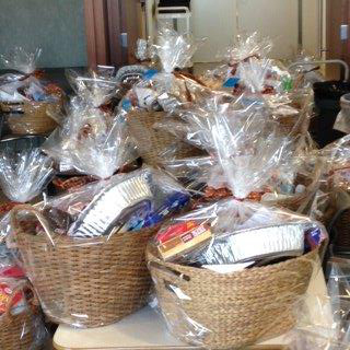 We’ve always gotten a great bunch of folks who help us check and double-check all the baskets and who have gotten very handy at wrapping the baskets in cellophane with big beautiful bows (it’s not as easy as it sounds!)
